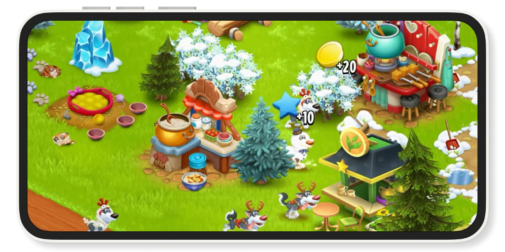 Starting December 15, the coziest farm in gaming comes alive with festive snow and special visitors: Huskies and Alaskan Malamutes.